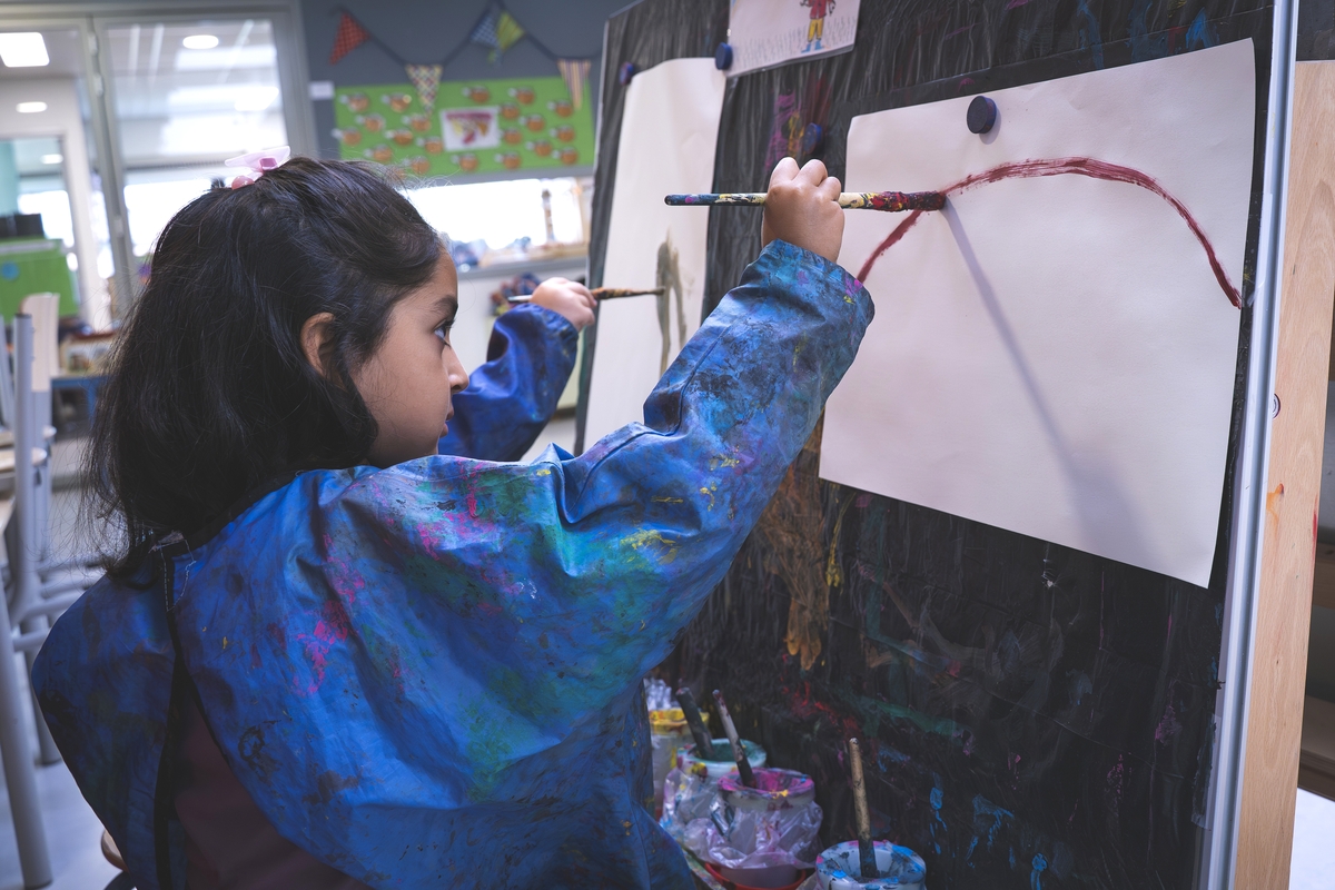 De school ontwikkelt een doorgaande leerlijn waarin de kunstdisciplines beeldend, muziek, drama/dans geborgd zijn.
